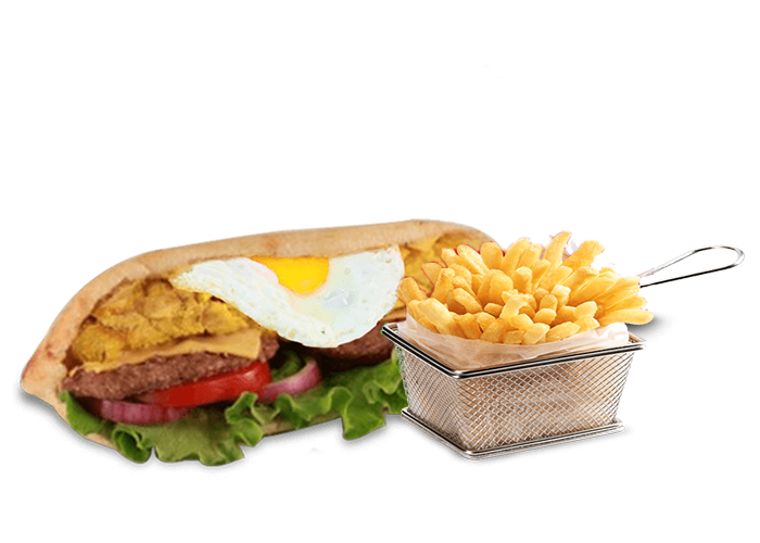 Viande de kebab, steak, cheddar + Pain au choix + Frites + 1.5 Euro de plus pour 1 Boisson 33cl au choix.