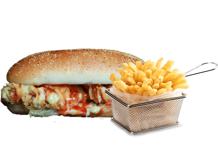 Poulet, mozzarella, sauce poivre + Pain au choix + Frites + 1.5 Euro de plus pour 1 Boisson 33cl au choix.