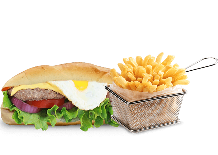Poulet au choix, steak, oeuf, boursin, cheddar + Pain au choix + Frites + 1.5 Euro de plus pour 1 Boisson 33cl au choix.